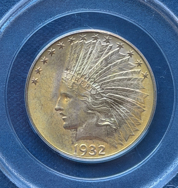The 1932 Gold $10 Indian Eagle PCGS MS64 is a rare and collectible coin from the United States, minted in Philadelphia. This uncirculated coin is composed of 90% gold and is certified by PCGS as being in mint condition (MS 64 grade). With its business strike type and historical significance as a pre-1933 coin, this $10 Indian Eagle is a valuable addition to any coin collection, especially for those interested in American gold coins.